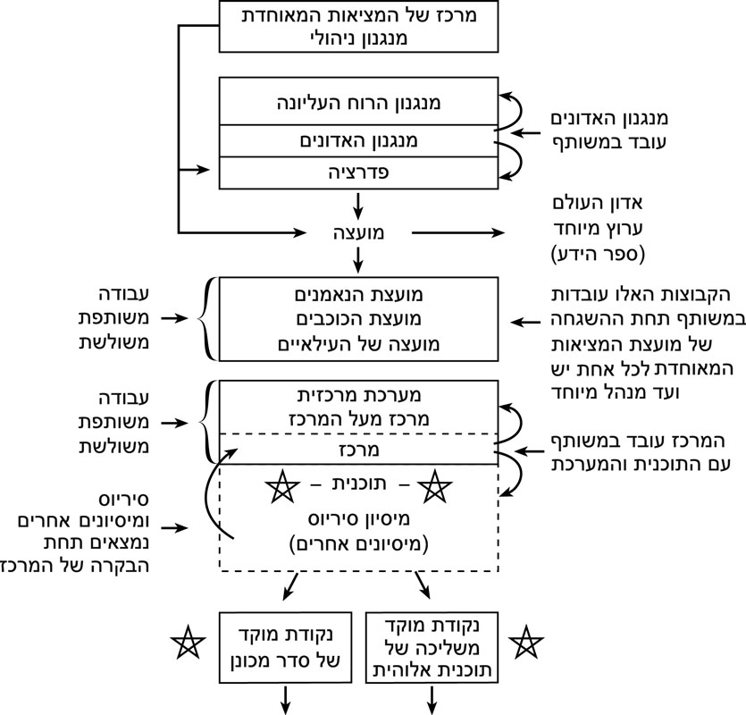 צבירי סיריוס הינם תשעה במספר. הוא מחזיק את העוצמה של היקום כולו בידו כהשתקפות של הסדר ההיררכי. נגרום לכם לשרטט את התקנה התפעולית של התכנית הזו מבעד לתרשימים. לאחר מכן, אתם תבינו אותה טוב יותר. עכשיו, ציירו את התרשים, בבקשה.